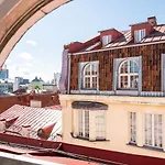 Dictumfactum Residence 2Bedroomアパ-トメントには,器具でいっぱいの台所,書き物机,座席 とテレビ付きの客室があります. アパ-トメントタリン空港から車で10分,タリンのTallinn Old Town地区に位置しています.